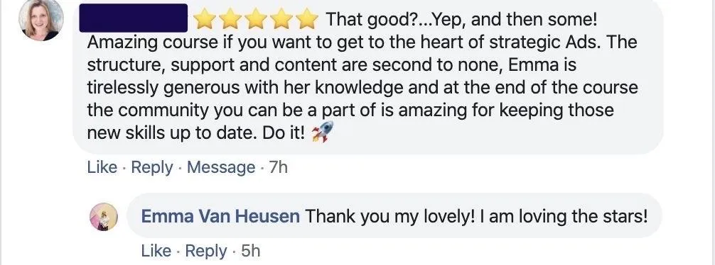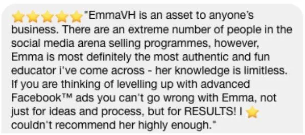 Built & taught by Emma Van Heusen, Agency Owner and Trained by Meta’s Global Strategy Team