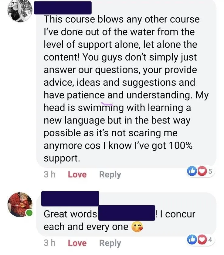 The self-study format is designed for independent learners who want the flexibility to work through the programme on their own schedule. You get instant access to the entire curriculum, so you can dive in right away and revisit the material as often as you need.