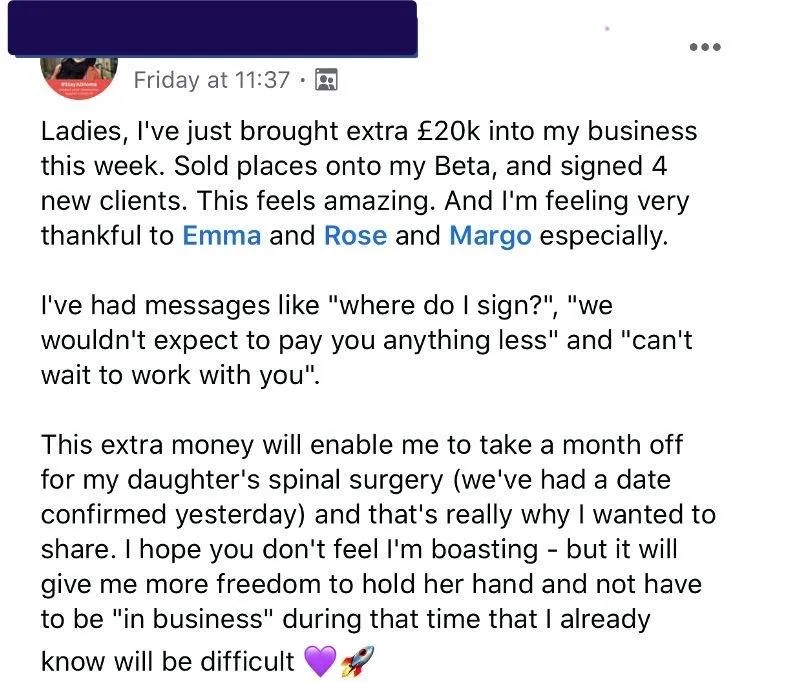 You’ll learn from both my wins and my mistakes, so you can skip the trial and error and reach success faster. I’ve been at both ends of the spectrum — from sitting in the job centre to being invited to Necker Island, recognised as a leading female entrepreneur alongside Sir Richard Branson. If I can do it, so can you.